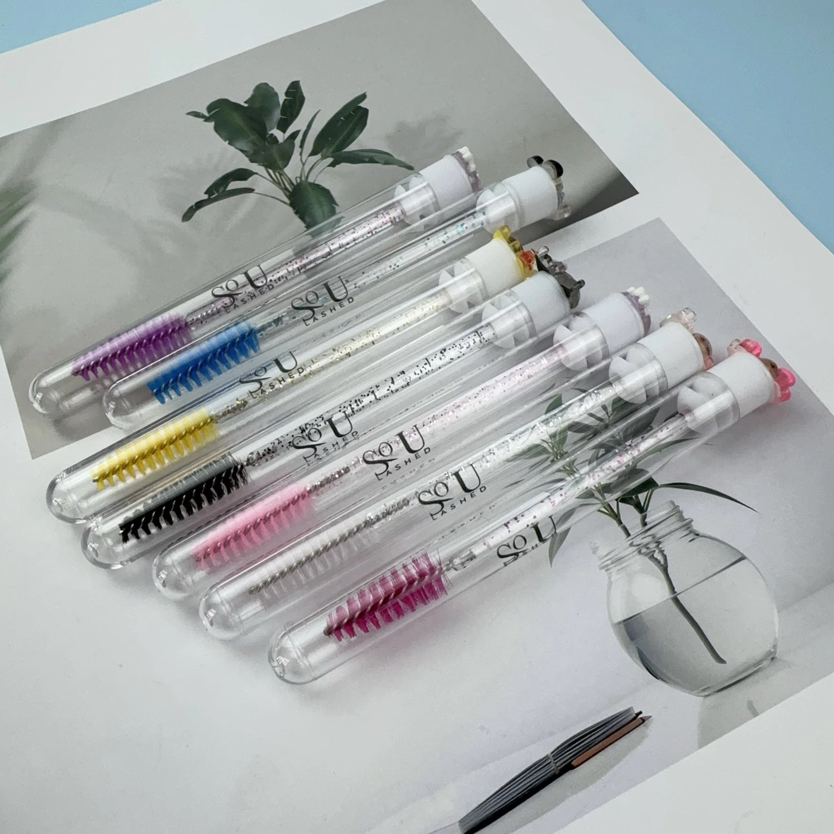 Keep your lashes fresh and flawless with our adorable duo set of Sanrio-topped lash brushes! Each order comes with two brushes. Each brush comes in a sleek cylinder case, ensuring it stays secure, clean, and ready for reuse. Perfect for touch-ups at home or on the go. Add a touch of charm to your lash care routine.